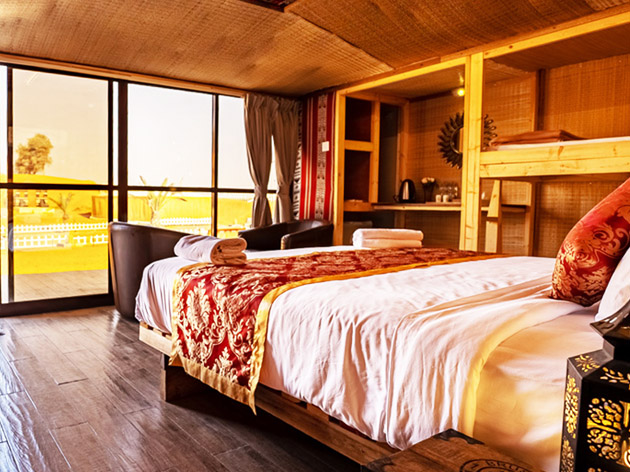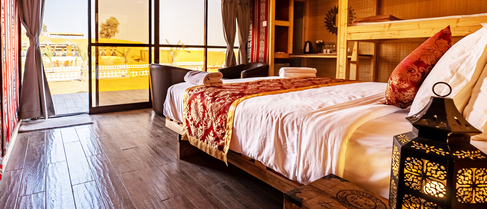 Spend a night at the heart of the desert in one of our luxury chalets exclusively designed to host your family